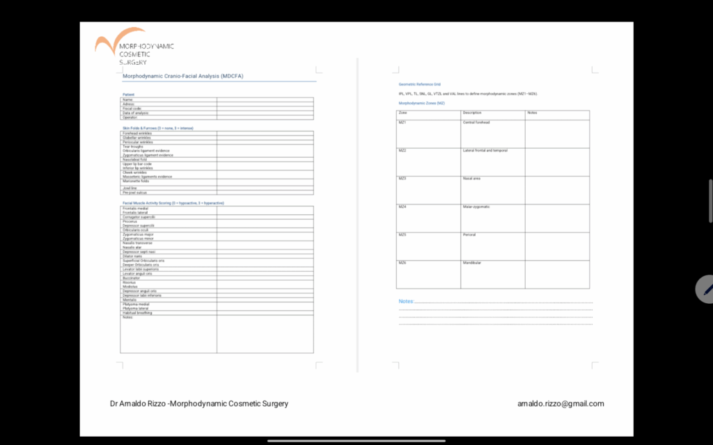 To facilitate detailed analysis of facial muscles, it is very useful to have a dedicated medical record, such as this example: